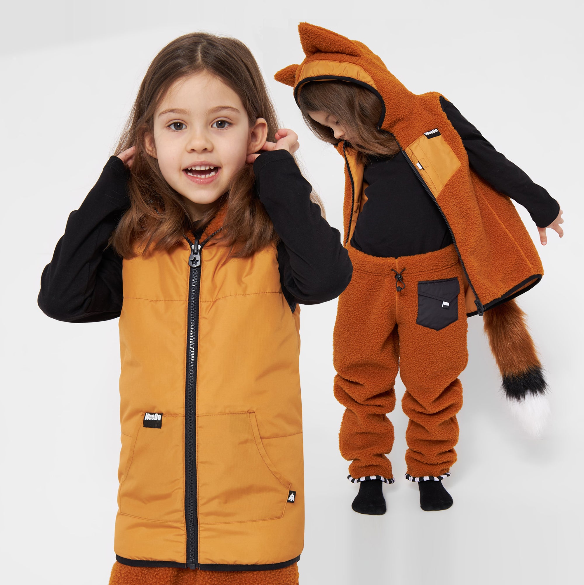 Will ich Fuchs sein? Oder heute doch keine Ohren? Unsere Westen kann man einfach wenden wie es einem beliebt: Kuschelfleece nach innen? Kein Problem! Das Ribstop-Gewebe ist ja ausserdem noch wasserfest und atmungsaktiv.
